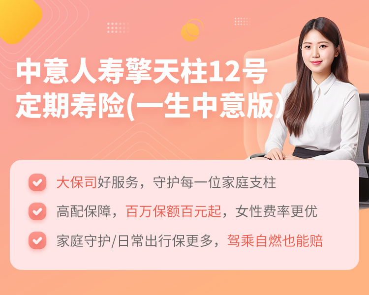 【新品上线】中意人寿擎天柱12号定期寿险(一生中意版)